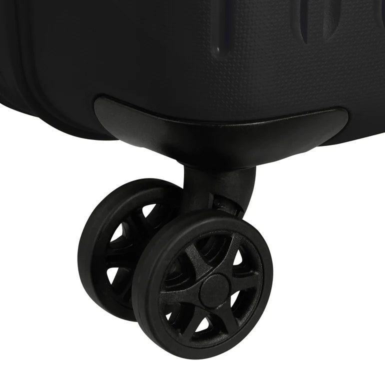 - Quatre roues Spinner doubles à flux d'air pour que vous puissiez facilement faire rouler une valise droite.
