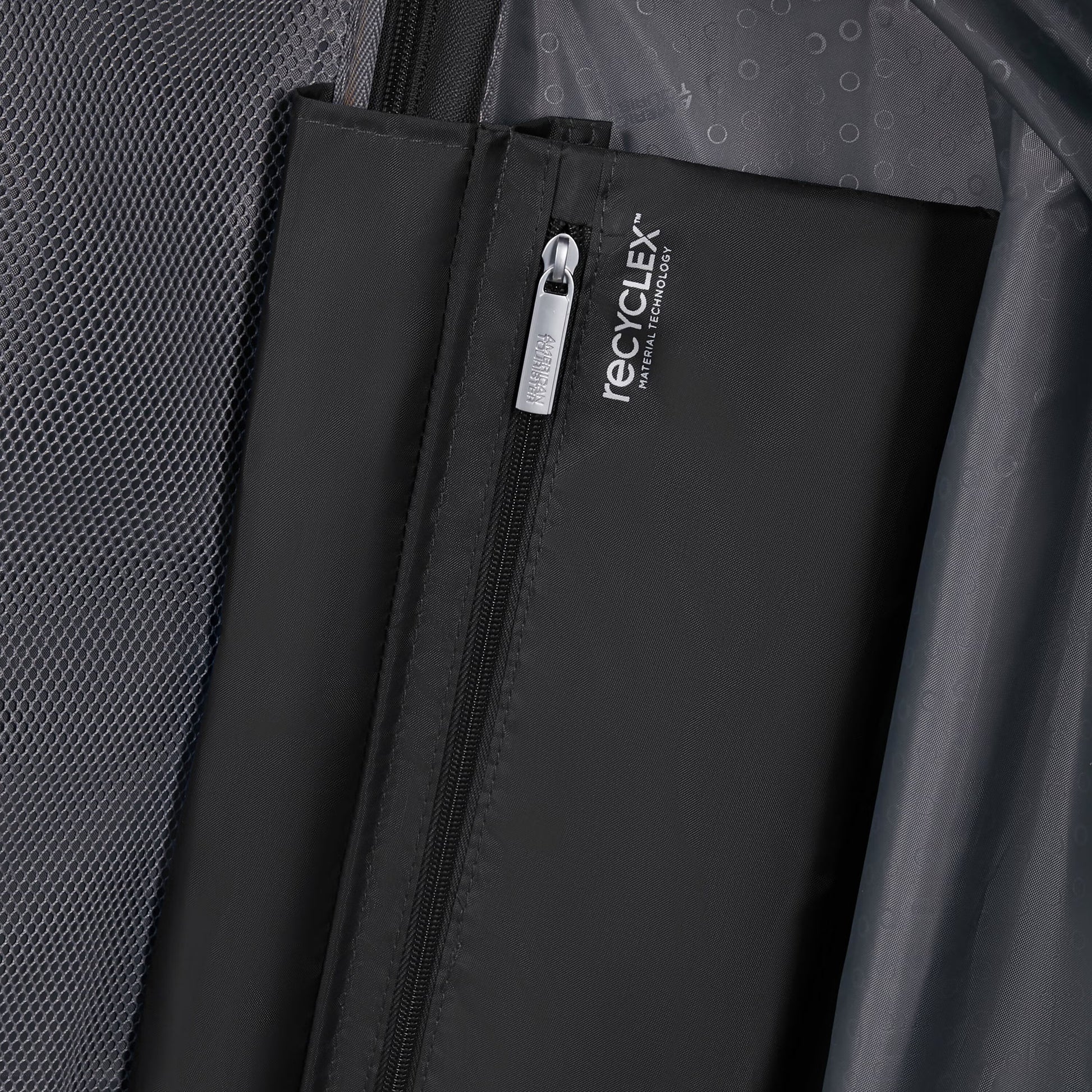 - Interior lining was made from Recyclex®, a material created using 100% post-consumer recycled PET plastic bottles.