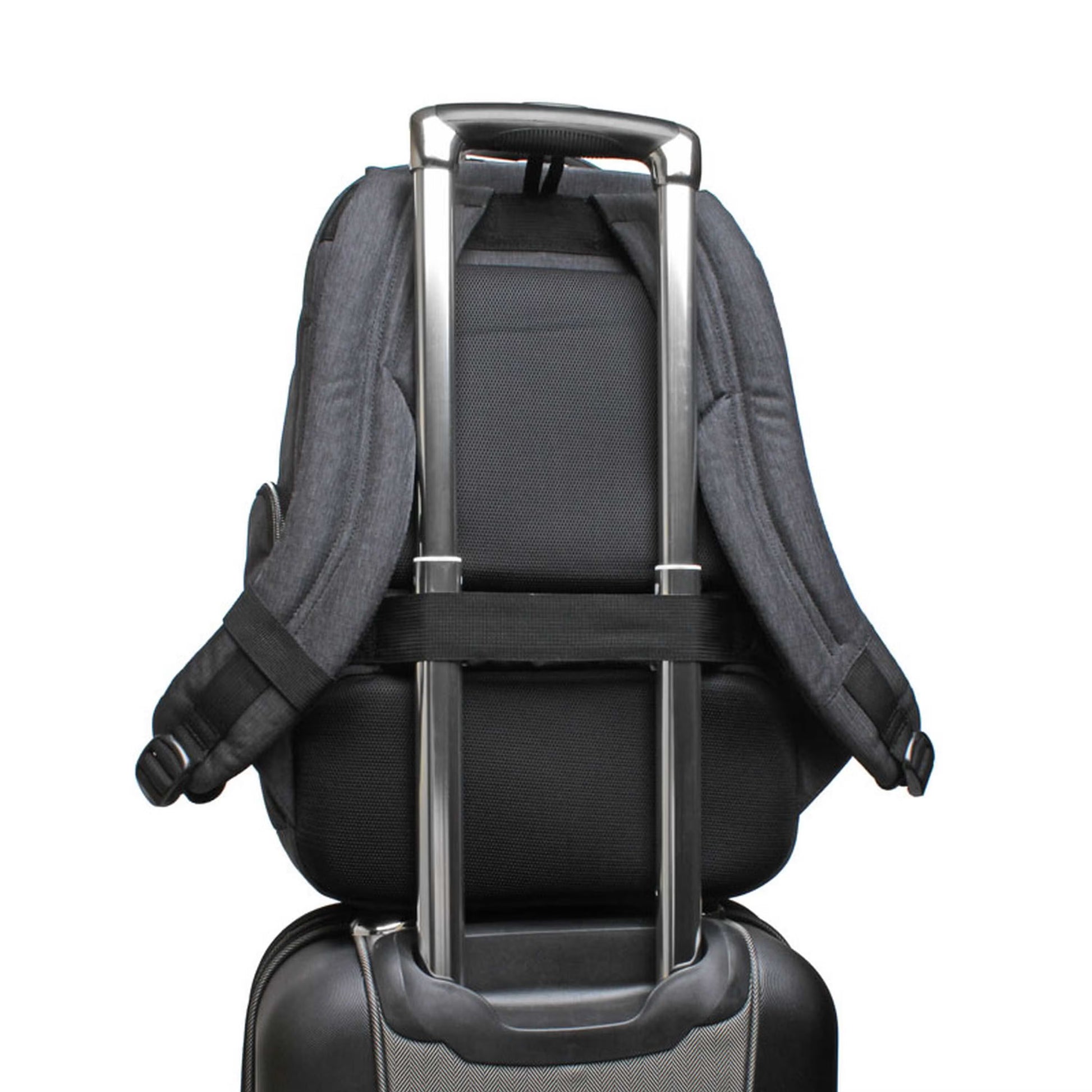 A fully-featured backpack with padded shoulder straps and micro air mesh back, side zippered pockets, tricot-lined tablet sleeve and padded laptop compartment.